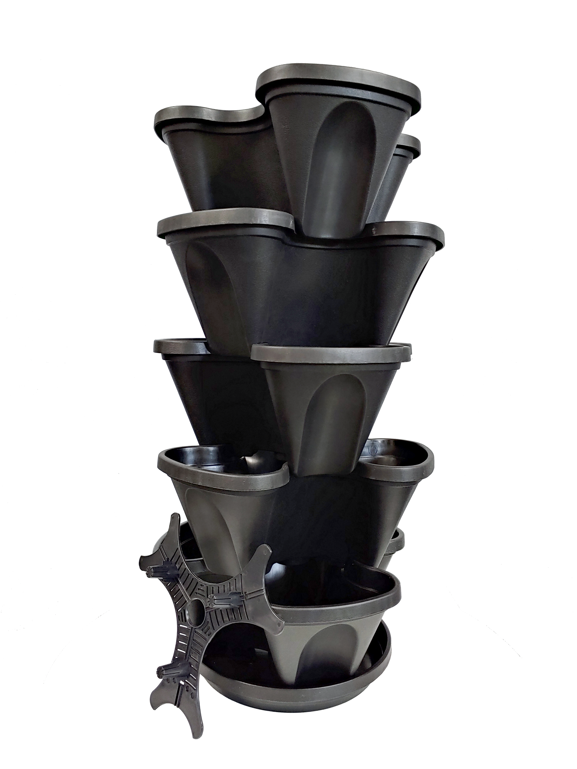 These Stacking Planters are a multi-tier set that consists of 5-tier planters with patented self-watering grids, tray (for stacking), and instructions. –